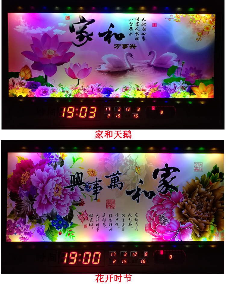 新房客廳裝飾日歷掛鐘,家和風(fēng)景萬(wàn)年歷,超薄七彩燈光更漂亮