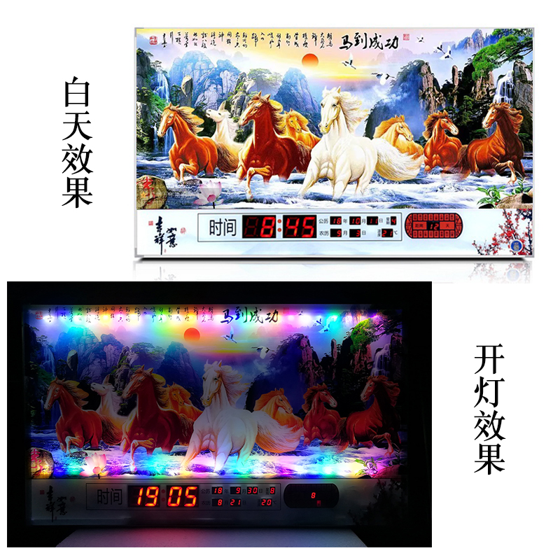 新房客廳裝飾日歷掛鐘,家和風(fēng)景萬年歷,超薄七彩燈光更漂亮