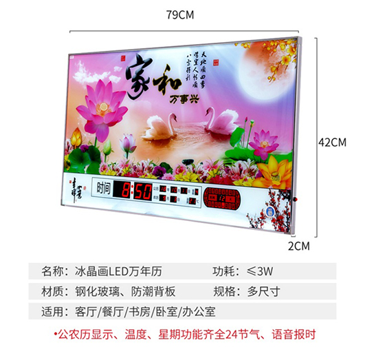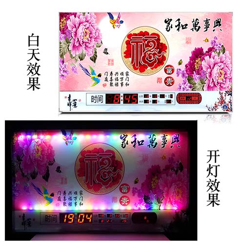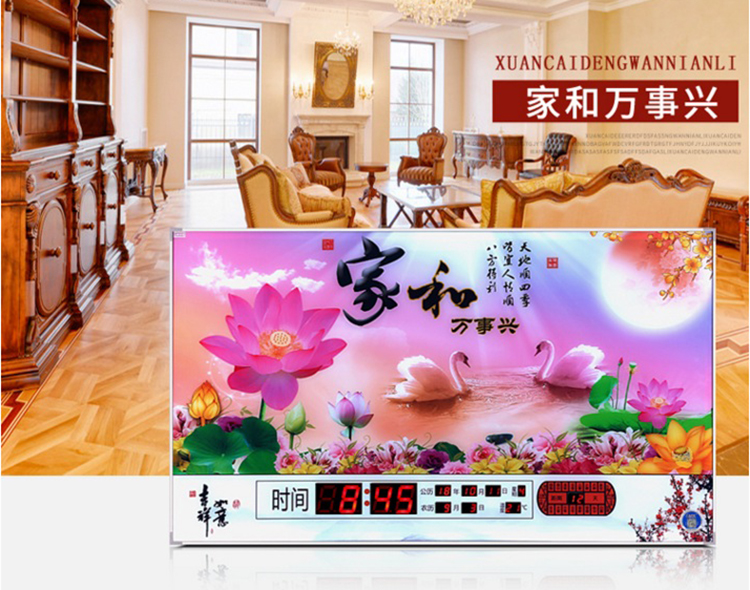 新房客廳裝飾日歷掛鐘,家和風(fēng)景萬年歷,超薄七彩燈光更漂亮