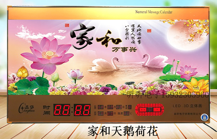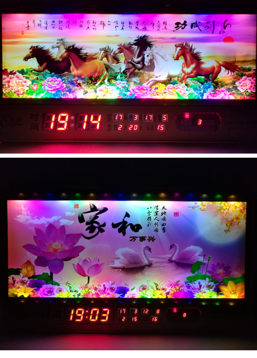 新房客廳裝飾日歷掛鐘,家和風景萬年歷,超薄七彩燈光更漂亮